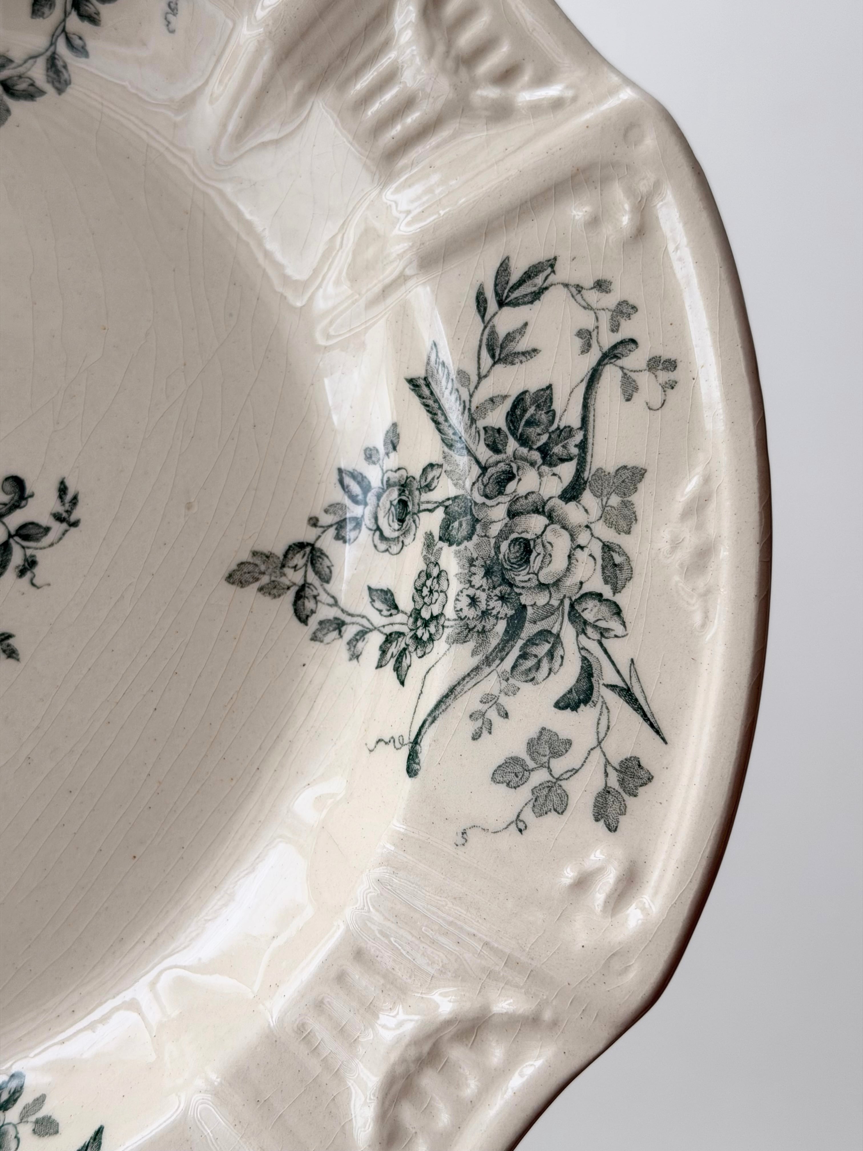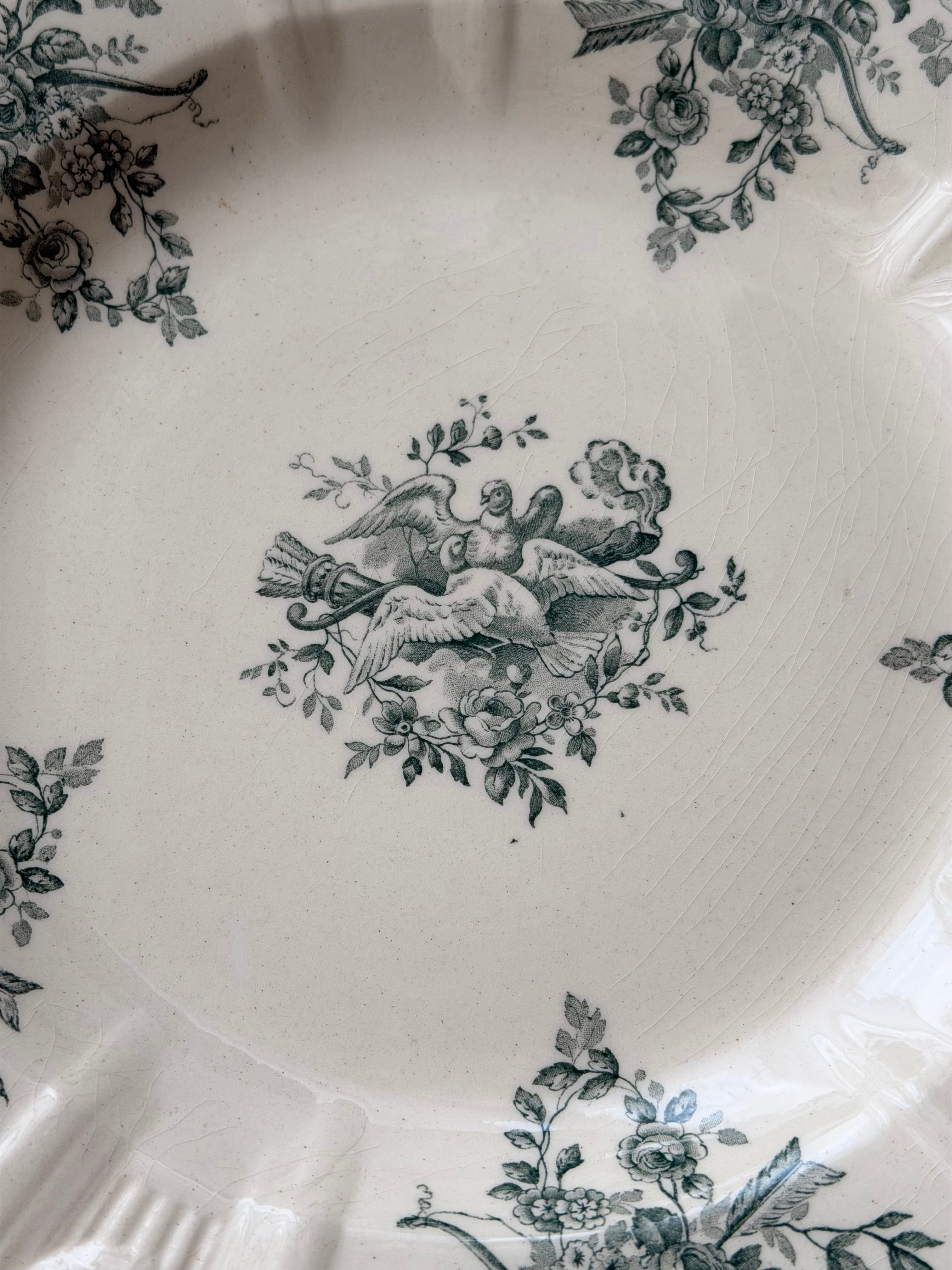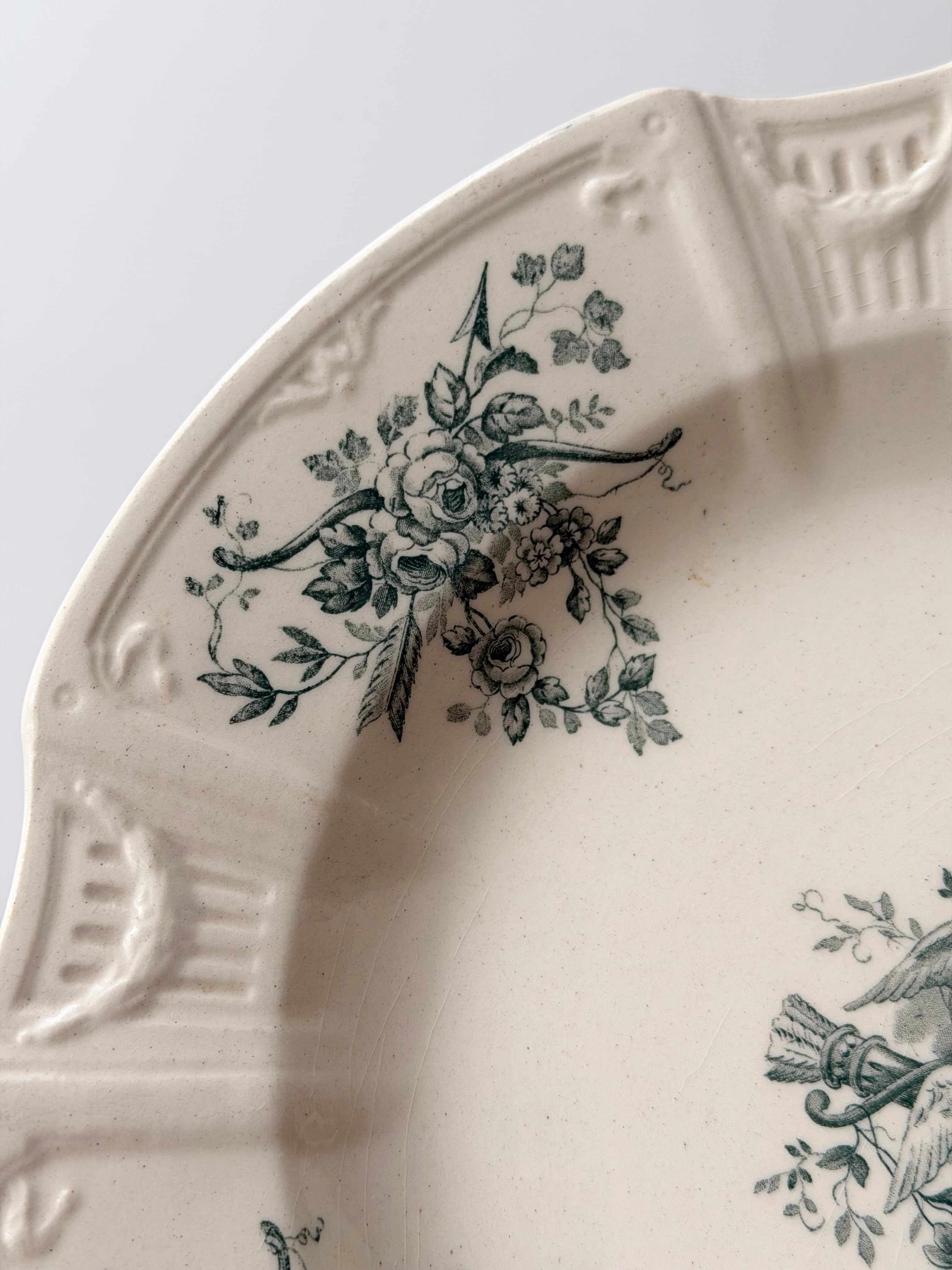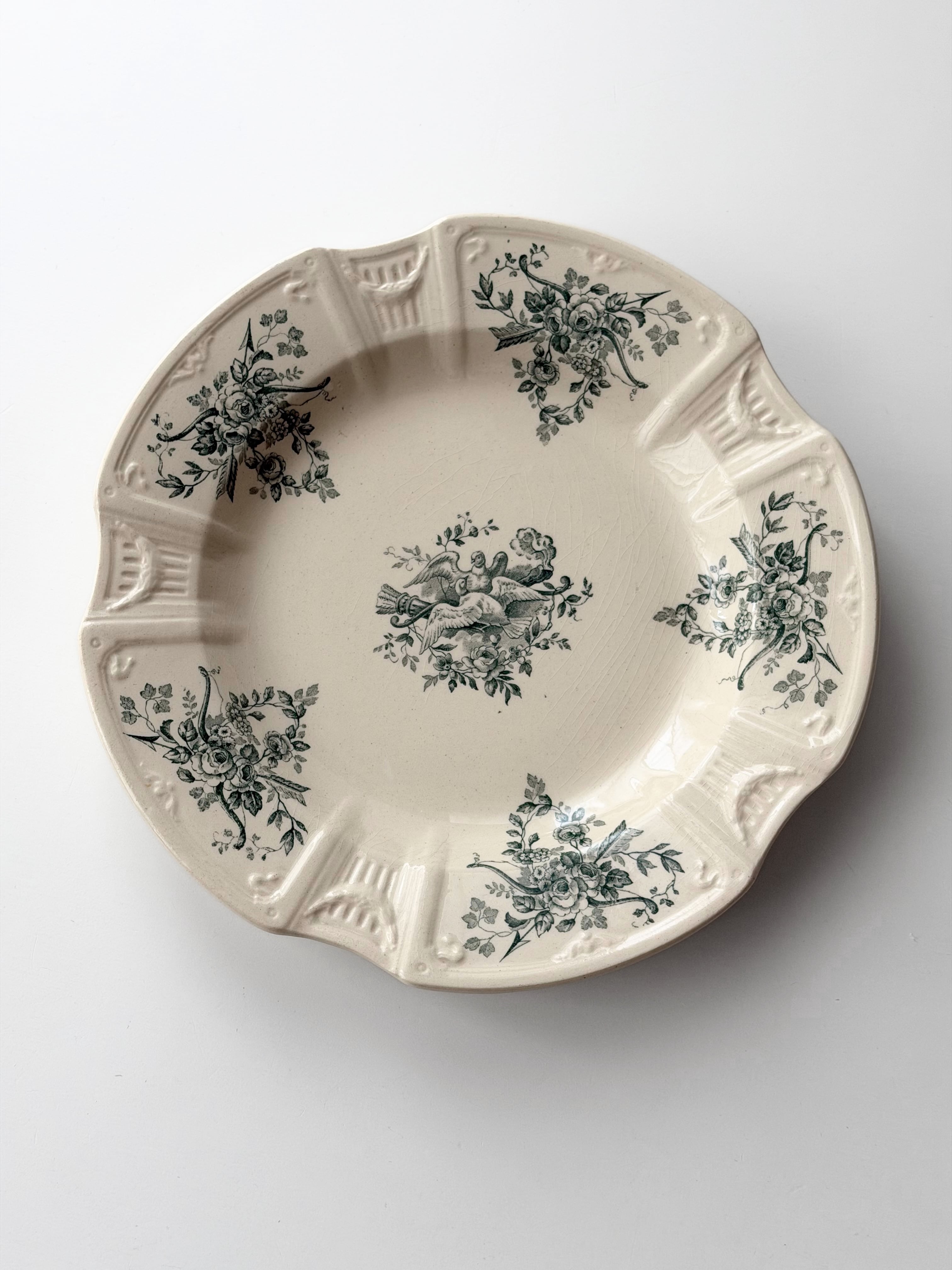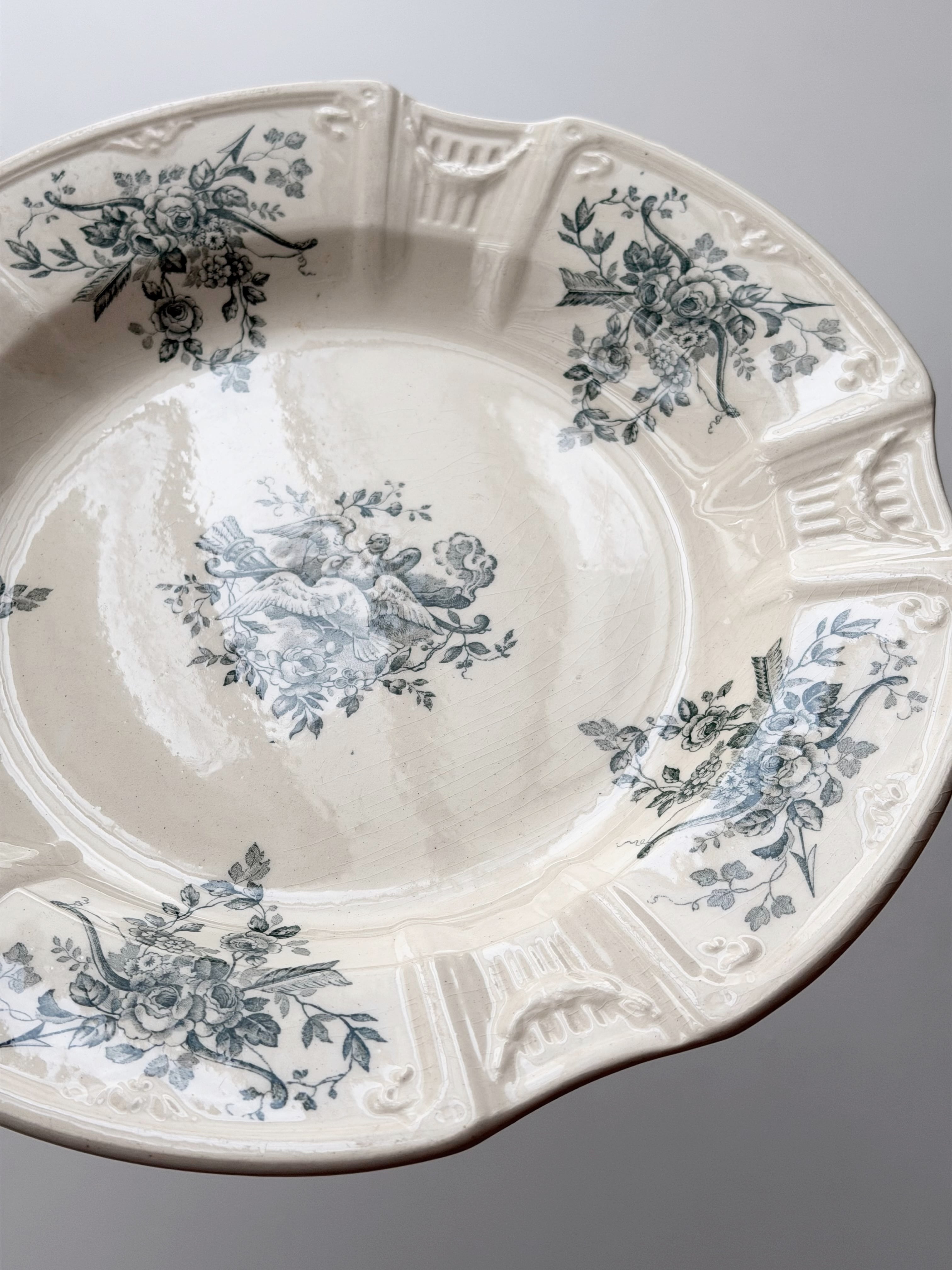Gien ジアン / 鳩と薔薇のレリーフプレート 深皿 e
