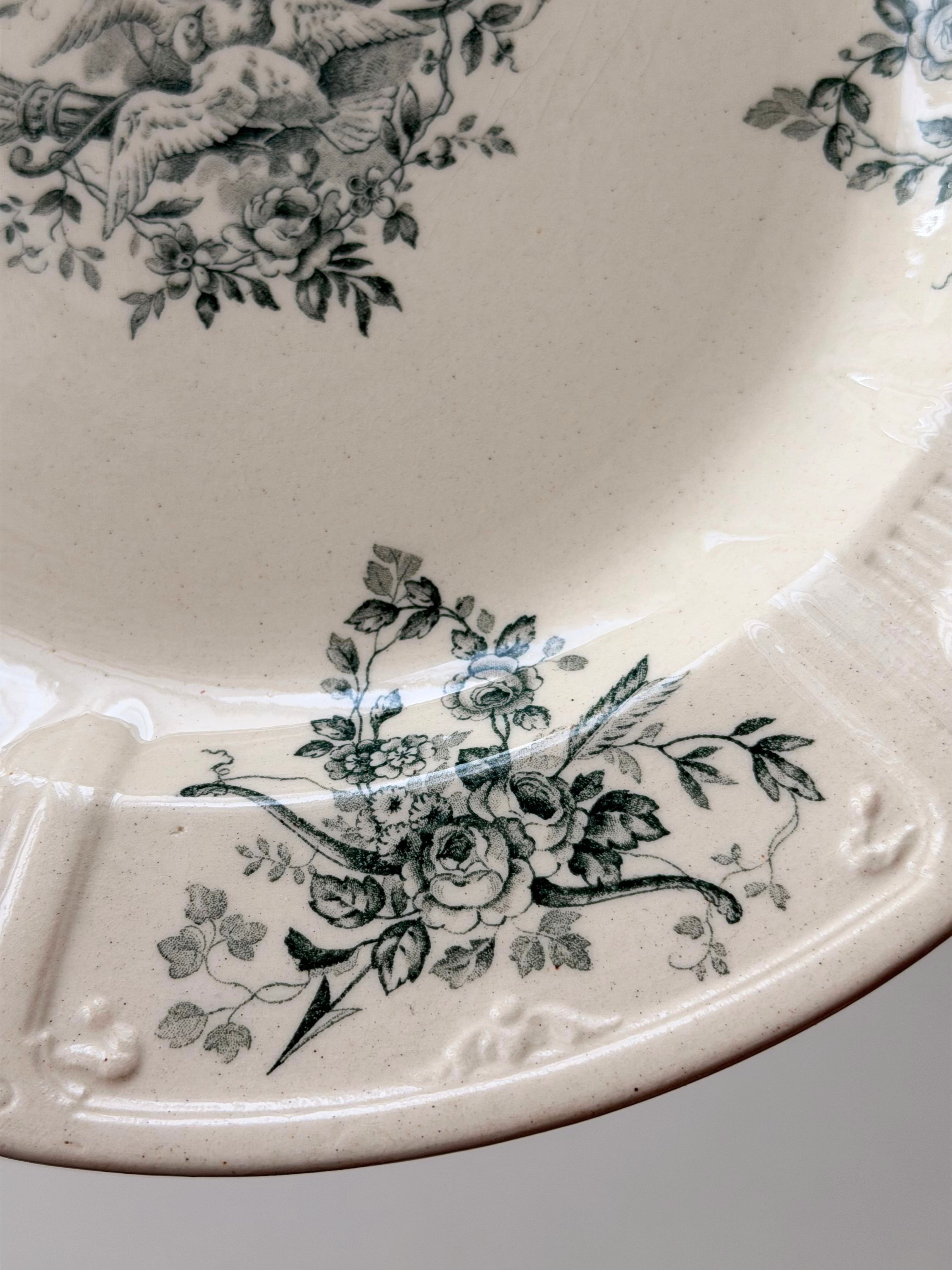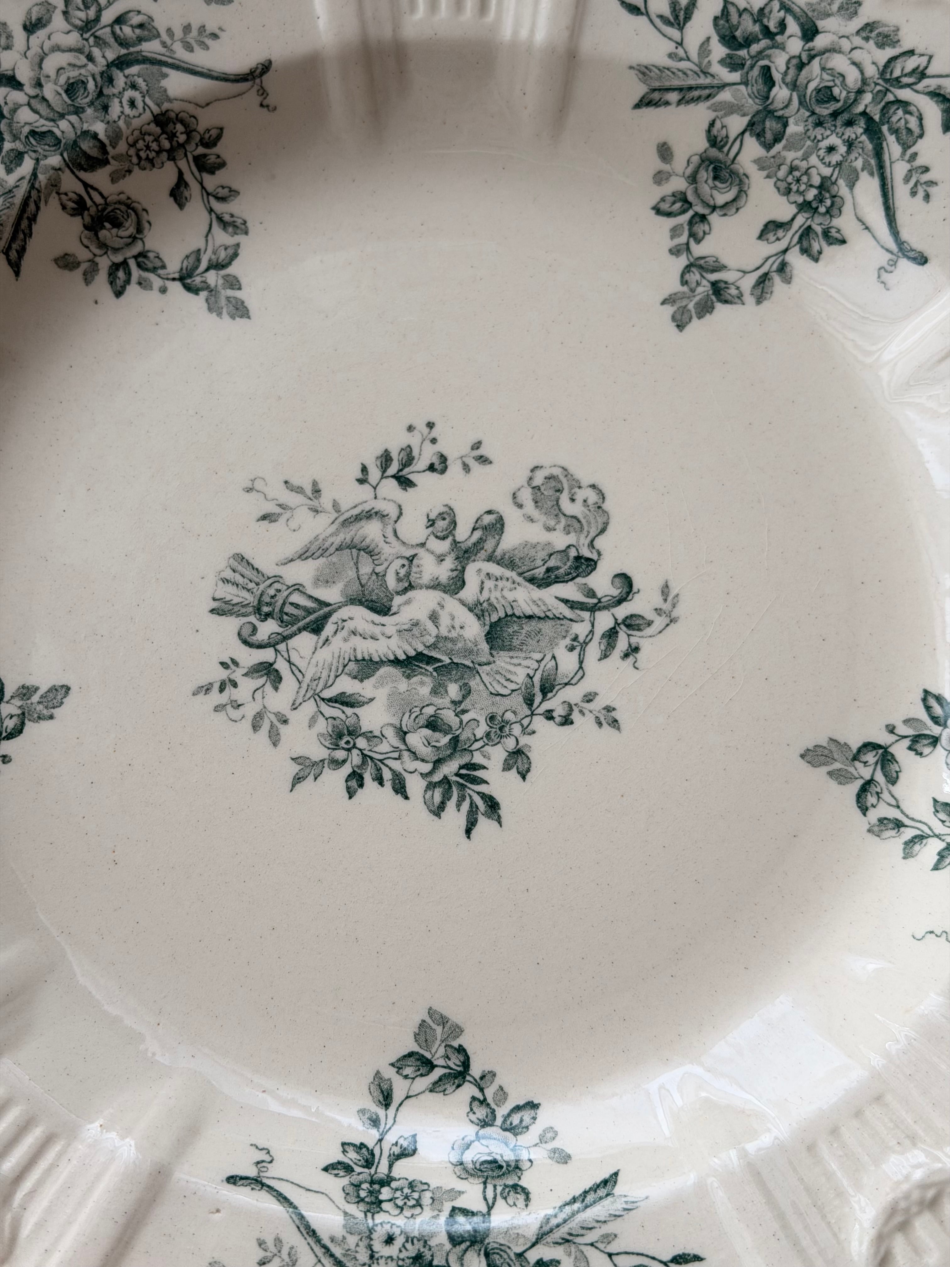 Gien ジアン / 鳩と薔薇のレリーフプレート 深皿 g