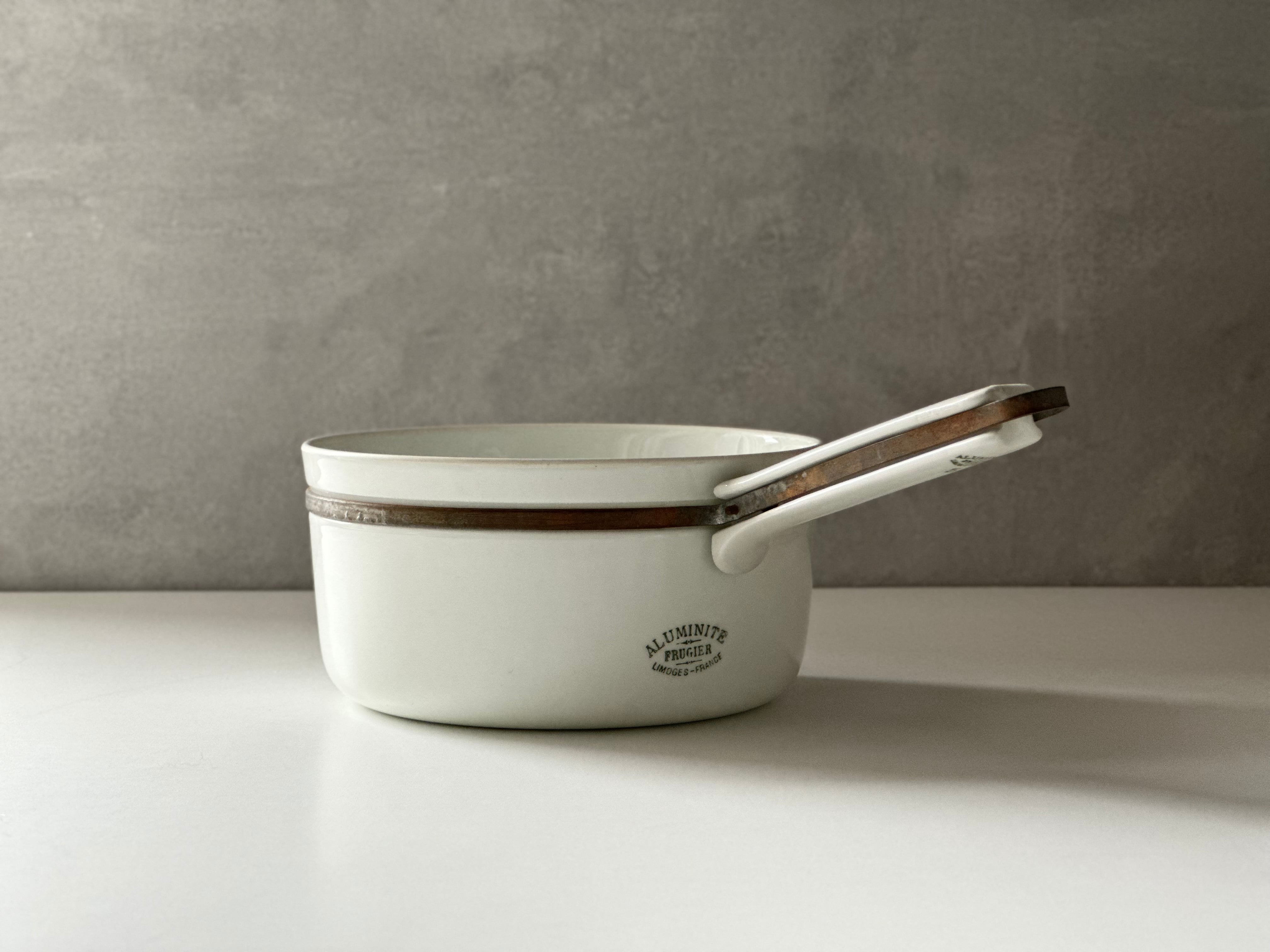 フランス リモージュより白釉の美しい片手鍋(ミルクパン)。